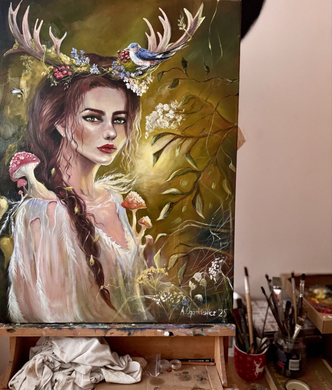 Namalowany przez absolwentkę Europejskiej Akademii Sztuk w Warszawie.