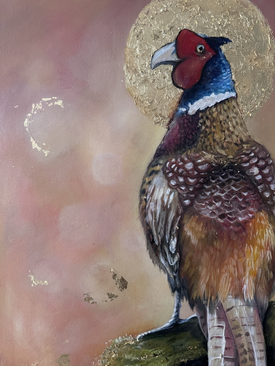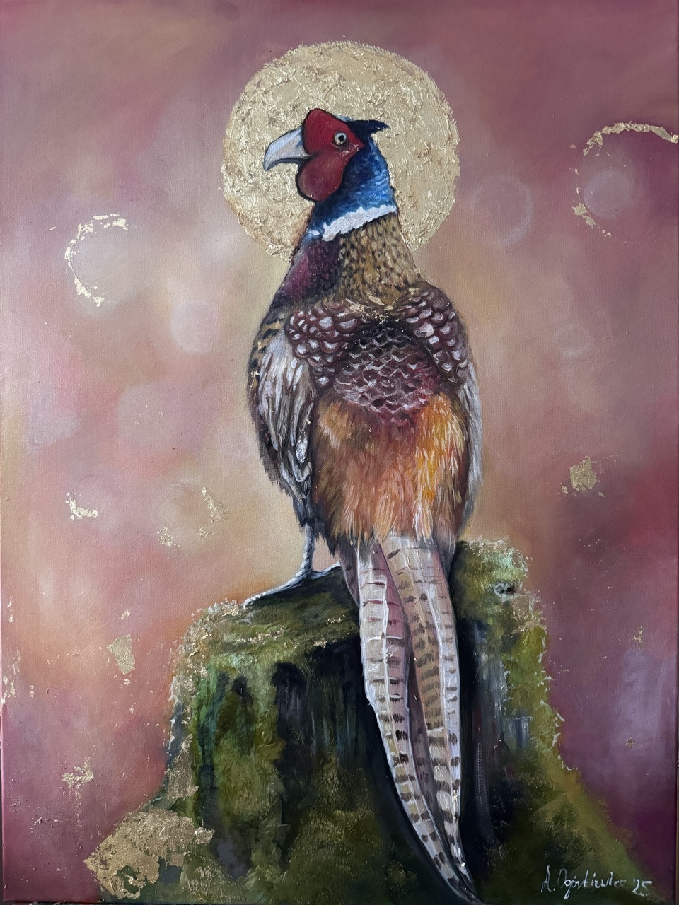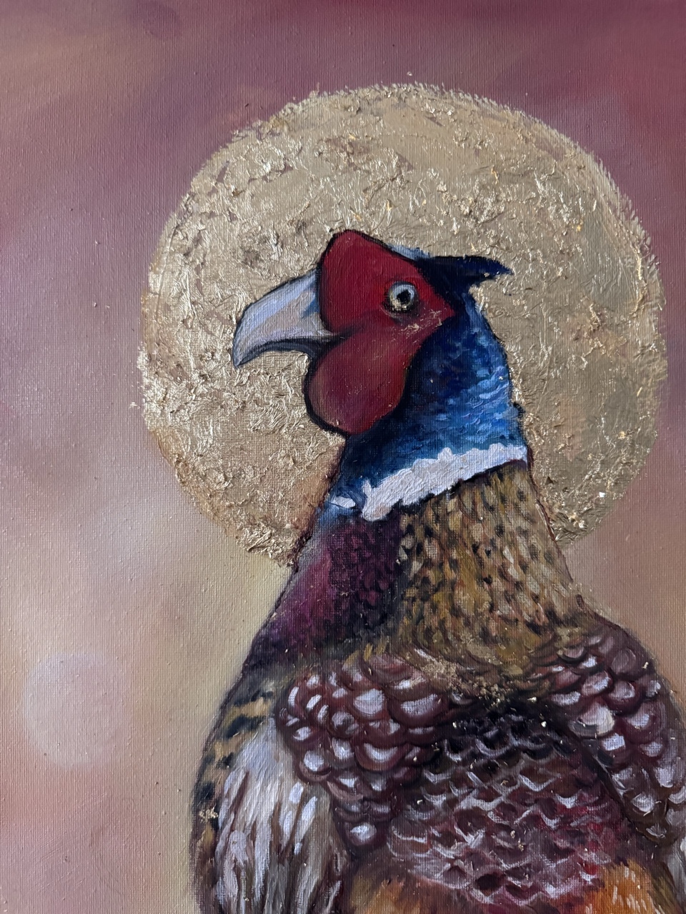 Olej na płótnie malarskim (płótno + krosno) plus złocenia szlagmetalem