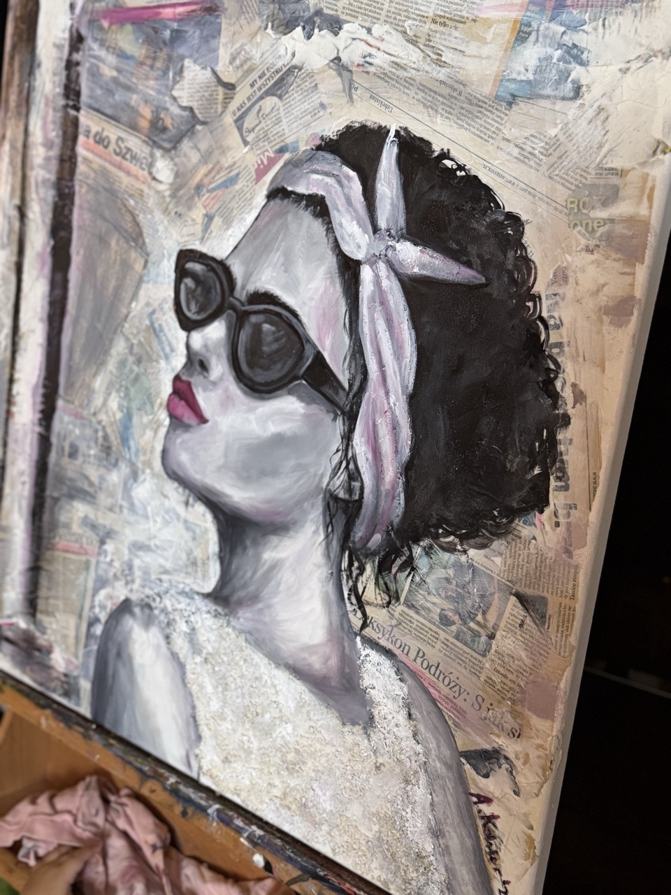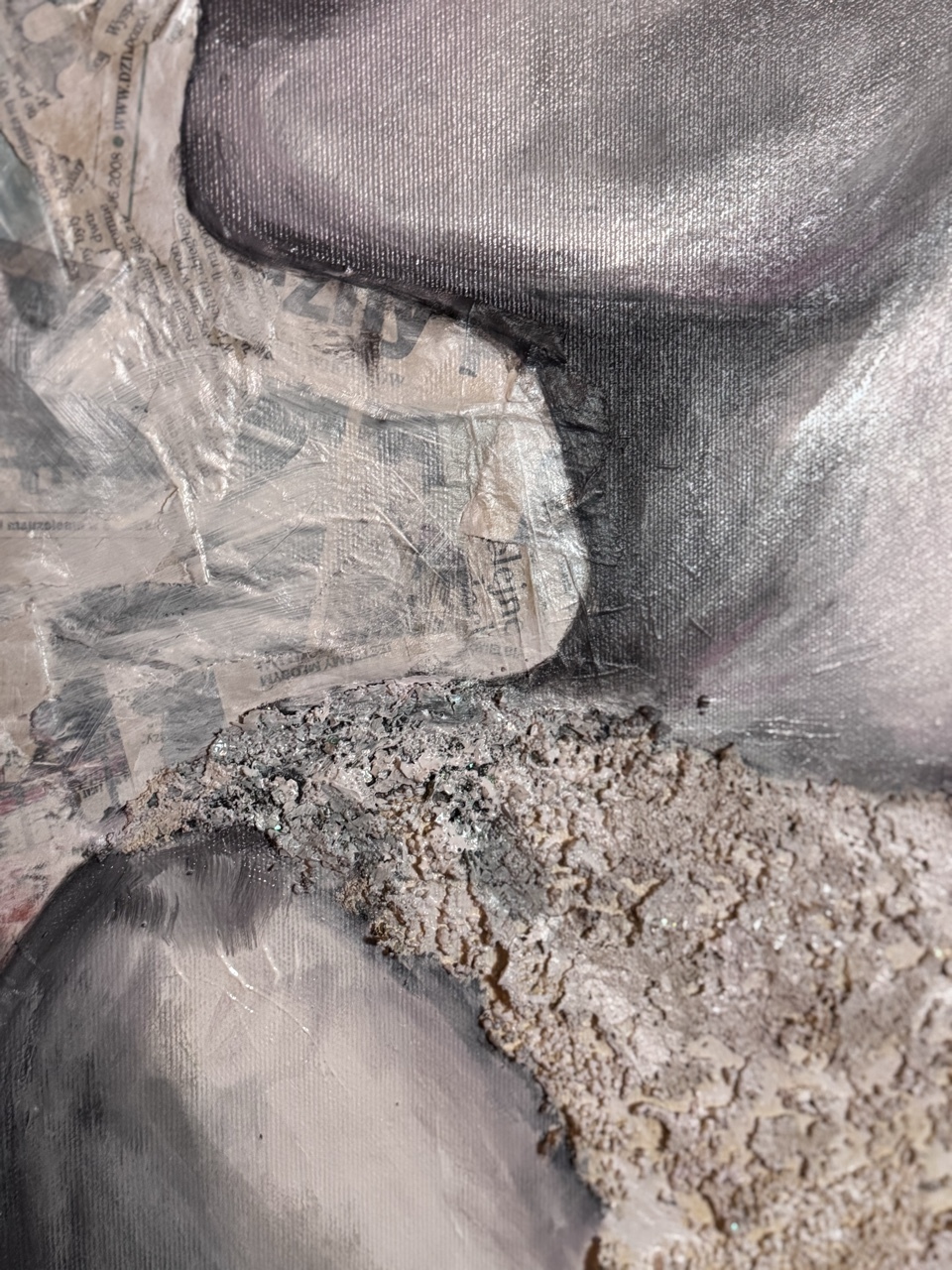 kolaż/ gazety/ pasty strukturalne/farby olejne
